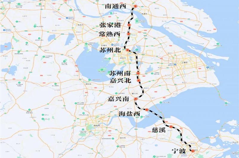 通蘇嘉甬鐵路正線(xiàn)運(yùn)營(yíng)長(zhǎng)度310.113公里,其中新建線(xiàn)路300.638公里,設(shè)計(jì)時(shí)速350公里,全線(xiàn)估算投資1080.9億元。其中,浙江段新建線(xiàn)路長(zhǎng)度165.914公里,跨海大橋長(zhǎng)29.162公里。通蘇嘉甬鐵路設(shè)計(jì)時(shí)速350公里,預(yù)計(jì)工期5年。全線(xiàn)設(shè)南通西、張家港、常熟西、蘇州北、蘇州南、嘉善北、嘉興南、海鹽、慈溪、莊橋等10座車(chē)站。