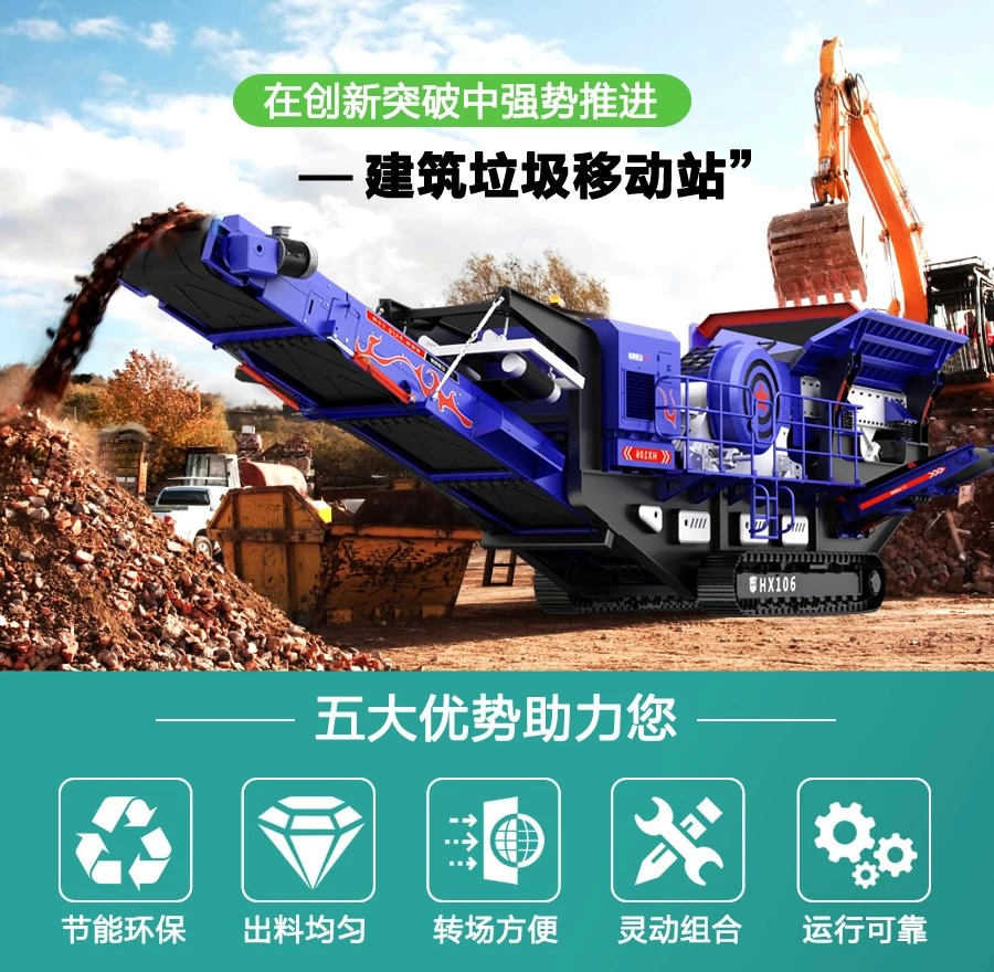 在這一認(rèn)知下,紅星機(jī)器改變傳統(tǒng)設(shè)備工藝,圍繞節(jié)能降耗、環(huán)保的理念滿足客戶的需求,研制出可以處理建筑垃圾的移動(dòng)式破碎站。
