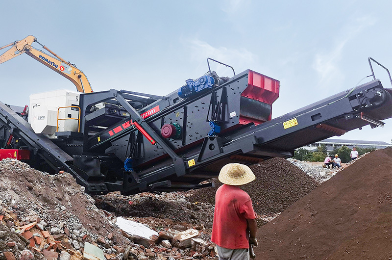(紅星履帶式移動(dòng)破碎篩分站處理建筑垃圾現(xiàn)場)