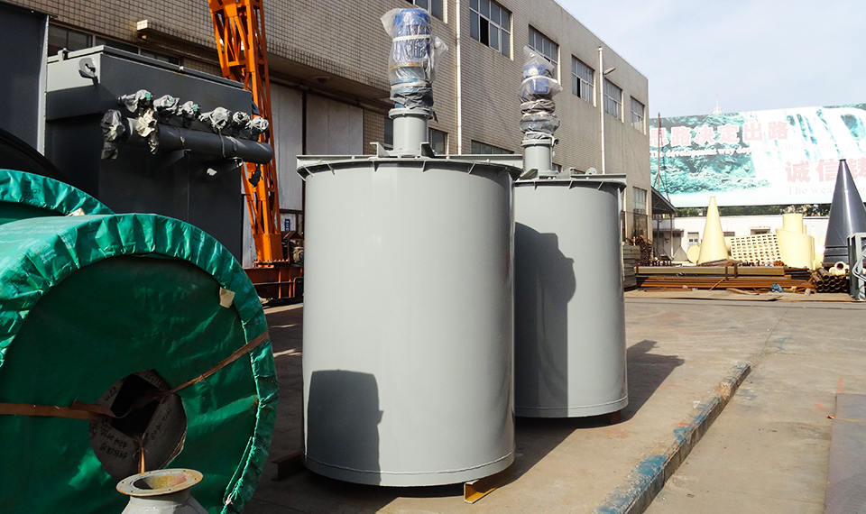 攪拌桶由電動機(jī)、葉輪、定子、軸承等部件組成,采用平底桶形輻射循環(huán)螺旋葉輪機(jī)械攪拌式方法進(jìn)行攪拌作業(yè)。攪拌槽工作時電動機(jī)牽引三角帶傳動裝置帶動葉輪旋轉(zhuǎn),礦漿和藥劑在葉輪的勻速攪拌作用下實(shí)現(xiàn)充分的相互混合,增加藥劑對礦漿的反應(yīng)時間,對藥物的反應(yīng)質(zhì)量進(jìn)行強(qiáng)化,從而使物料得到充分的攪拌和混合,為下一階段的浮選機(jī)生產(chǎn)做好必要的準(zhǔn)備條件。